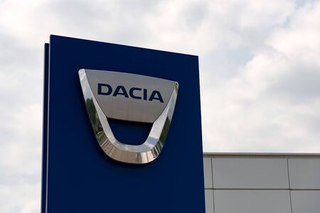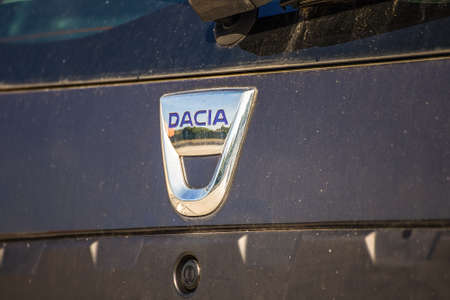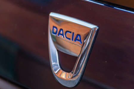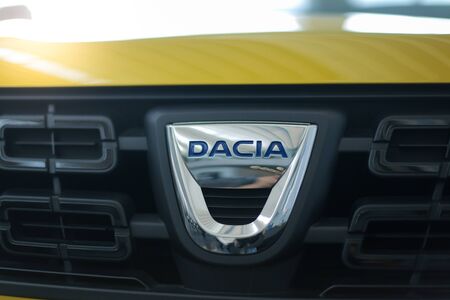 Bucharest, Romania - June 28, 2019: Details with the logo of the Romanian car manufacturer Dacia