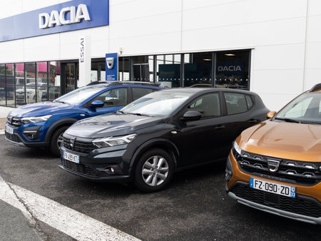 Sables d Olonne, France - May 07, 2017: Dacia Tour 2017 is a commercial operation organized by the car builder in order to present its cars throughout France - Close-up on cars