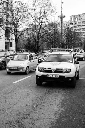 Dacia Duster in traffic of downtown Bucharest, Romania, 2020.