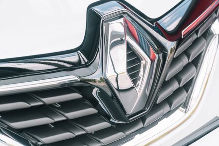 Vinnitsa, Ukraine - April 02, 2019. Renault Captur - new model car presentation in showroom - logo