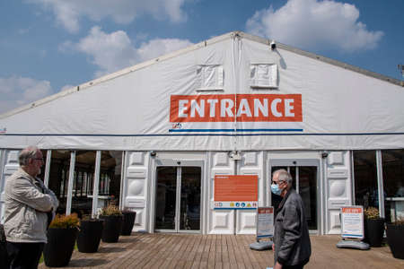 Venlo / Limburg, Netherlands - 2021-04-20. Entrance point the way to the Vaccination Center.