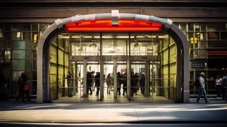 A striking view of a modern glass entrance to a retail store, showcasing bright interior lighting and a clean, minimalist design inviting shoppers into a vibrant space.