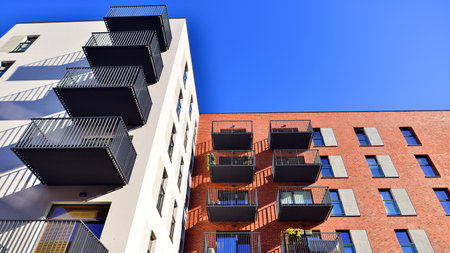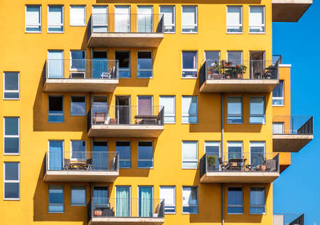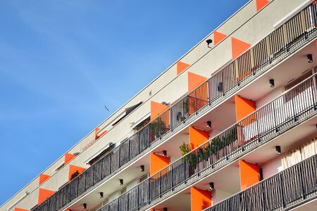 Modern european apartment building with balconies on a clear sunny day