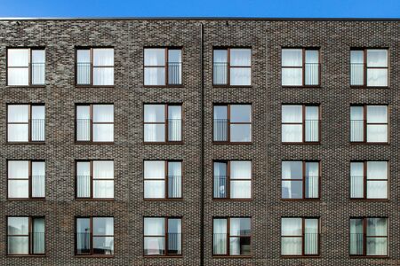 facade of a tall brick apartment building. Construction and real estate. Buying and selling an apartment