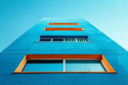 Building with orange balconies on the side of it. Generative AI.