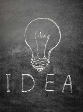 Light bulb and text idea on a black chalkboard with chalk dust