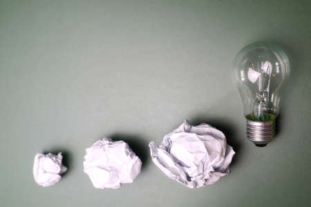 crumpled paper light bulbs idea or innovation concept.