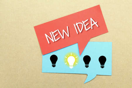a conversation box with the word new idea and a bulb icon