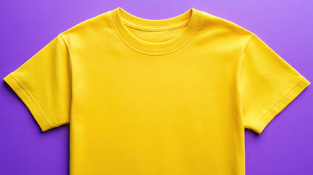 A bright yellow t-shirt displayed on a vibrant purple background offers a cheerful and stylish look, perfect for fashion mockups and branding.