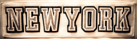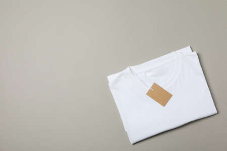 Close up view of blank clothing label on fabric texture. Clothing label with place for text