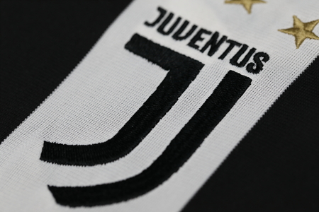 BANGKOK, THAILAND -JUNE 26: The New Logo of Juventus football club on an official jersey on June 26,2017.