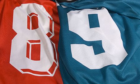 Close-up view of a sports jersey number during a game in a vibrant stadium atmosphere