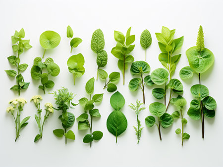 Creative layout made of fresh herbs on white background. Flat lay, top view