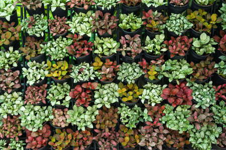 Different color plants of Fittonia is a decorative foliage plant of tropical region.