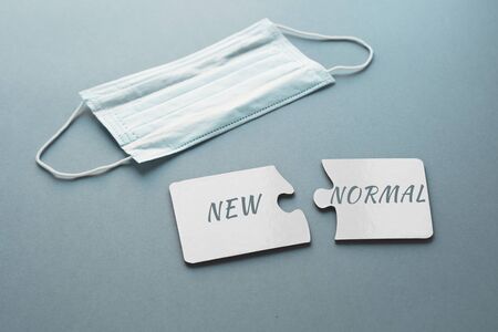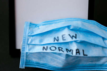 New normal concept. Letters on the face protective mask.