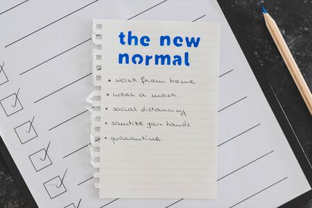 life after the global covid-19 pandemic, memo about the so-called New Normal from quarantine and hand sanitizing to working from home and wearing a mask in public