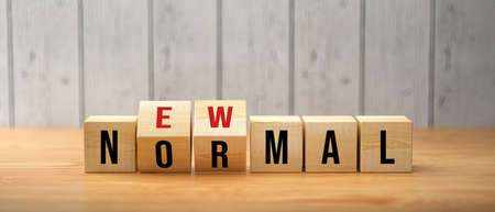 NEW NORMAL word from wooden blocks. New normal after covid-19 pandemic concenpt. Social distance.