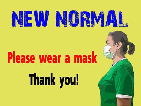 new normal text in woman face mask