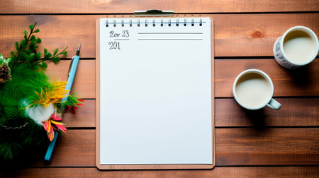Setting the Stage for Success: Visualizing New Year Goals 2021 with Notebook, Coffee Cup, and Plant on Wooden Table