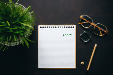 2026 New Year Resolution Goal List and Plans Setting - Business office desk with notebook written about plan listing of new year goals and resolutions setting. Change concept.