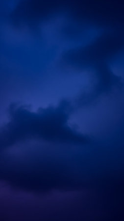 Dark blue clouds swirl in a dramatic, moody sky. The deep indigo and navy tones create a sense of mystery and atmospheric depth.