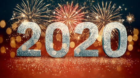 Stunning display of shimmering numbers 2020 surrounded by sparkling fireworks. Ideal for celebrating New Year with vibrant energy and festive atmosphere.