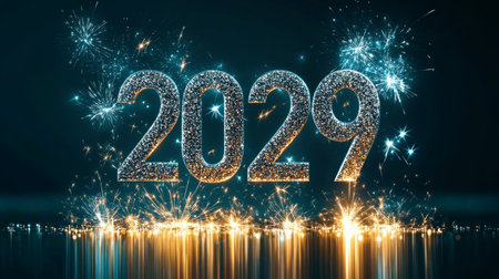 New Year Celebration 2029 Sparkling Silver Numbers with Festive Fireworks and Bokeh Lights