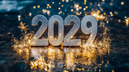 Stylish Silver 2029 Celebration Design with Sparkles on Dark Background, Signifying a Bright Future