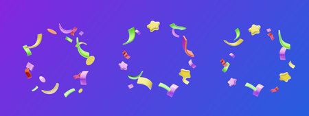 Set of 3D vector confetti frames with space for text.
