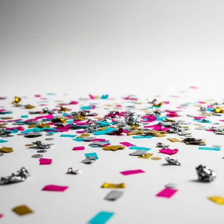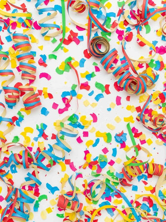 Colorful confetti falling against a light background, creating a festive atmosphere perfect for celebrations and events