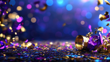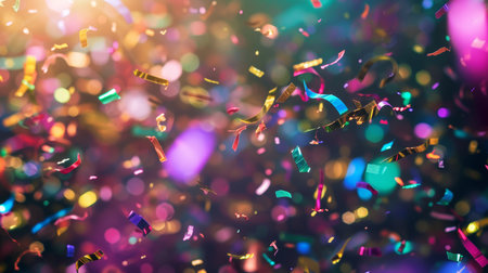 Colorful confetti and glitter sparkle against a dark backdrop for festive celebrations