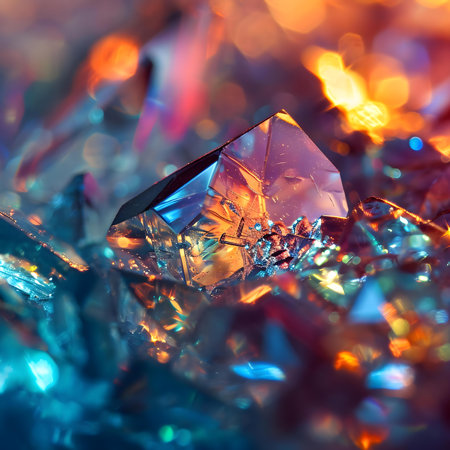 Explore the stunning beauty of colorful crystals capturing light in an abstract composition. A mesmerizing close-up reveals the intricate details and vibrant hues.