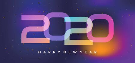 Trendy happy new year 2020 greeting modern design. Vector eps 10. Modern greeting celebration with neon lights and gradient colorful background.
