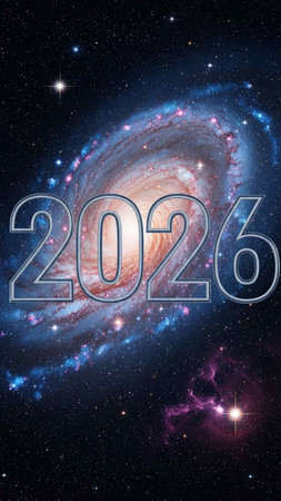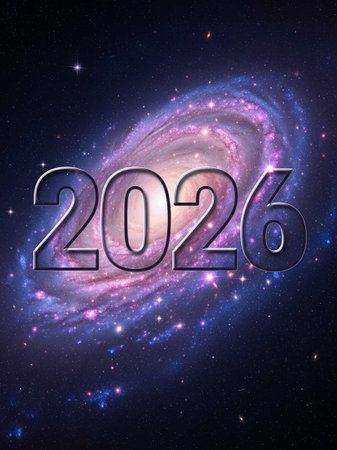 New Year's Eve celebration with the number of the year in the center of the galaxy.