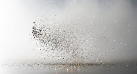 Dynamic image showcasing an explosion of shimmering blue and silver glitter against a black background, highlighting beauty and elegance in motion.