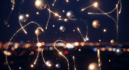 Confetti with metallic sheen floating elegantly against a dark backdrop