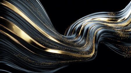 Elegant abstract of black flowing forms with gold accents for luxury designs