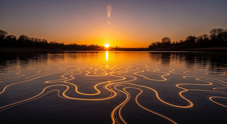 Sunset over the lake. Beautiful landscape with sunrise over the lake.