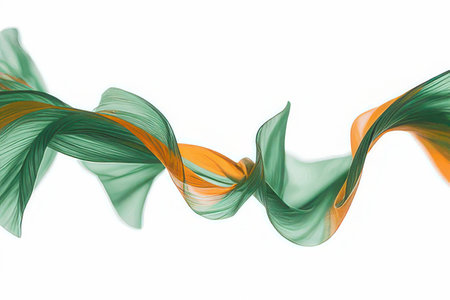 abstract background with a green and orange wavy silk or satin fabric