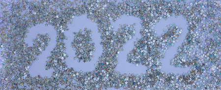 Happy New Year 2022 on a brilliant background of silver stars.