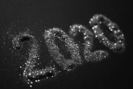 2020 shiny silver sparkles pattern on black table.