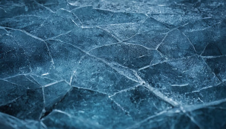 Captivating ice surface showcasing intricate patterns and cracks. Ideal for winter-themed projects, nature illustrations, or abstract backgrounds.