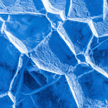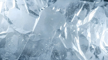 Crystal clear abstract background showcases sharp ice formations with cool blue tones, creating a serene atmosphere ideal for design and artistic projects