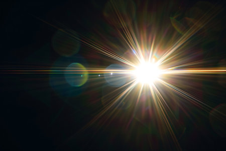 Radiant Solar Display Bright Sun Flare with Lens Reflection Glows on Dark Background for Graphics