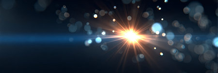 sun burst with lens flare and bokeh effect on black background