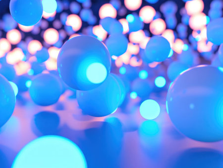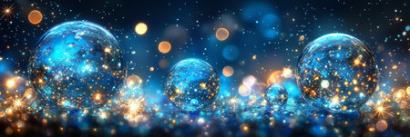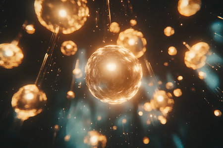 Glowing spheres in an abstract background creating a magical atmosphere with glittering particles