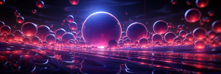 Banner. Abstract background, neon balls. Background for the site. AI generative. illustration in photorealistic style.