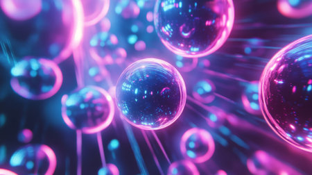 abstract glowing spheres, blue and pink colors, futuristic background, digital art, D rendering, soft focus, depth of field, creative concept of light and space, vibrant atmosphere