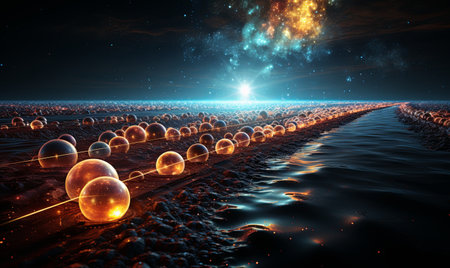 Digital glowing spheres floating through space