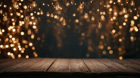 A mesmerizing collection of warm string lights with a beautiful bokeh effect, creating a cozy atmosphere perfect for indoor events, celebrations, and gatherings.
